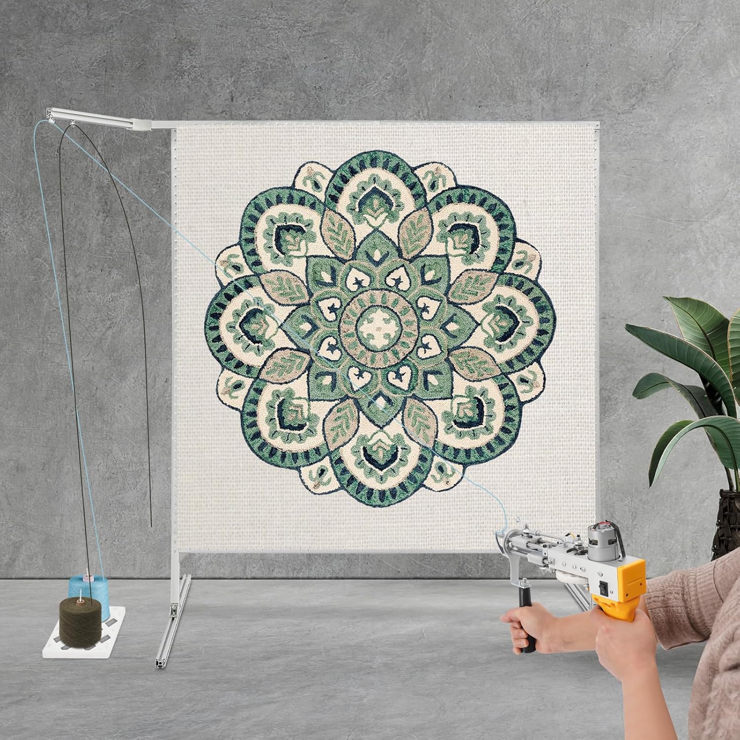 Specifications:Material: Aluminum AlloyProcess: OxidationColor: SilverAssembly Required: YesMount Type: FreestandingEach Aluminum Alloy Tube Size: 30*30mm/1.18*1.18inAdjustable Width: Within 152cm/59.84inAdjustable Height: Within 152cm/59.84inBase Length: 80cm/31.5inFrame Size: 152*152cm/59.84*59.84inPackage Size: 91*20*14cm/35.83*7.87*5.51inGross Weight: 8.7kg/19.18 lbsNet Weight: 8.27kg/18.23 lbsDetails:Corner Fitting: It can used to secure the frame for added stability.Yarn Tray: It allows you to store yarn for convenient use and avoid dirty yarn.Package Included:1*Tufting Frame1*Yarn Tray1*Chinese&English Packing ListAll Accessories for InstallationNotes:1. Please check the product size before ordering to make sure it fits your needs.2. Please note that the product can only be used against the wall. It will collapse when used without support.3. Please note that the width and height of the product can be adjusted, but they cannot be adjusted simultaneously.4. Please allow the slight color difference caused by the shooting light and 1-3cm error due to manual measurement, and make sure you do not mind before you order.