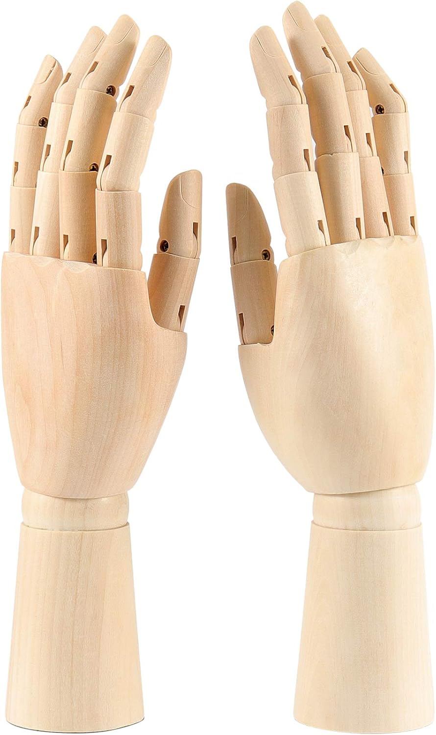 Why Choosing Us? ● You will get 2 PCS left hands and 2 PCS right hands. The size of the wooden hand model is 11.8 x 4 inches, which can meet the diverse needs of your daily life. ● Each finger and knuckle of the wooden hand can be easily moved. can use their imagination to create different postures and improve creativity and hands-on ability. At the same time, it is also a perfect choice as a gift for friends and family. ● Our wood mannequin hand is made of natural solid wood, with high hardness, sturdiness, excellent durability and great quality. ● The wood mannequin hand is created based on the structure of the human body. The fingers and knuckles can be easily rotated into any posture, making it a professional model for students who practice drawing and painting. ● There is a flannel at the bottom, which can effectively prevent sliding when you putting various postures. ● The wooden hand model has been polished many times to make its surface smooth and beautiful and feel comfortable. Products with modern aesthetic design can perfectly match any decorative style. It will add elegance to your office or house. Specification: Material:Natural Solid Wood Size: 11.8 x 4 inches Color: Natural Color Packing Includes Wooden Left Hand Model x 2 Wooden Right Hand Model x 2